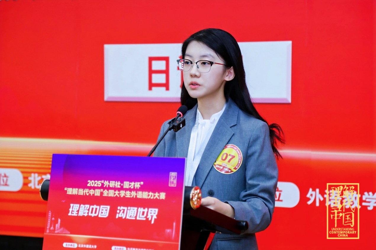 12月6日,2025年“外研社·国才杯”“理解当代中国”全国大学生外语能力大赛(多语种组)全国总决赛在北京顺利举行。我院日语系2023级本科生杨千益与鲁冠秀两位同学分获大赛金奖和银奖,日语系王琳、金文峰作为参赛指导教师指导参与并陪同观摩了比赛。