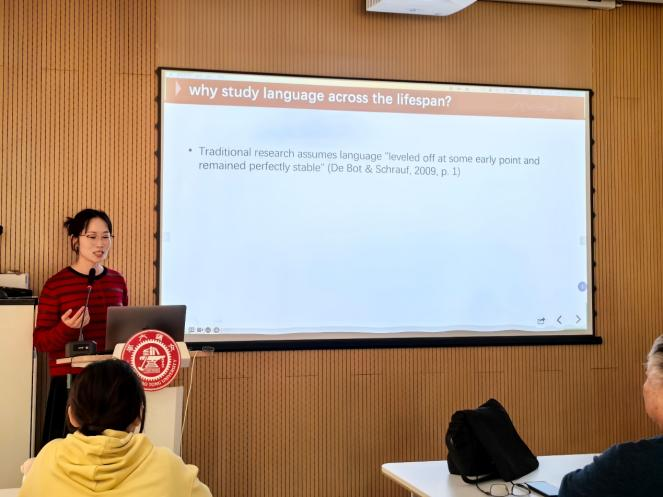 赵晴雯同学与黄爱军副教授采用汉语版多语言叙事评估工具(MAIN),系统考察了汉语叙事能力的毕生发展,揭示了汉语叙事能力在全生命周期中的分化发展轨迹,明确了复述任务对各年龄段叙事表现的普遍促进作用,为语言评估与干预框架提供了重要的指导方向。